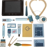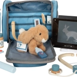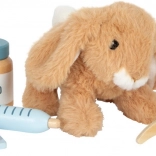 Ez a bájos állatorvosi készlet puha plüss nyuszit ötvöz valósághű eszközökkel: sztetoszkóp, hőmérő, otoszkóp, injekciós fecskendő, kötés és védőgallér. Nem hiányzik a „röntgen” tablet sem cserélhető felvételekkel (kutya, macska, nyúl, ló) és törölhető kártyákkal a jegyzetekhez. A gyerekek gyakorolhatják az állatgondozást, bővíthetik szókincsüket és egészségügyi ismereteiket – miközben rengeteg ötletes játékélményben lesz részük.