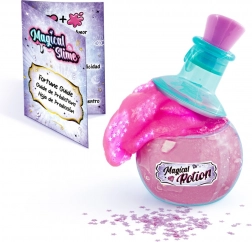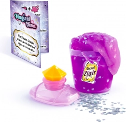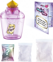 A So Slime varázselixír készlet játékos alkímiát hoz a gyerekeknek – néhány lépésben saját, színes és fényes slime-ot keverhetnek. A csomagban találsz tematikus üvegcsét (Secret Elixir, Mystery Potion vagy Magical Potion), slime-por keverékeket, csillámokat vagy konfettit és egy áttekinthető útmutatót. Az eredmény puha, rugalmas és látványos slime lesz, hatásos szívecskékkel, csillagokkal vagy „gyémántokkal”.