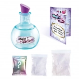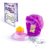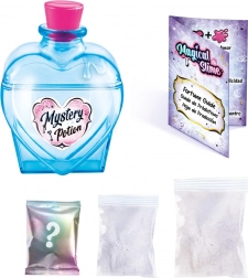 A folyamat egyszerű: öntsd a porokat az üvegcsébe, adj hozzá vizet, rázd össze, majd hagyd, hogy a keverék összeálljon. Ezután gyúrd a kívánt állagig, és díszítsd. A slime színe egy apró jóslatot is hordoz – a mellékelt jóskártya alapján kiderítheted, mit üzen a varázselixír.