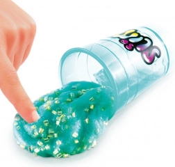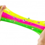 - 6 tasak színes slime, 4 féle dekor, 3× pohár, keverő spatula