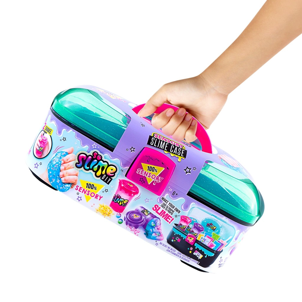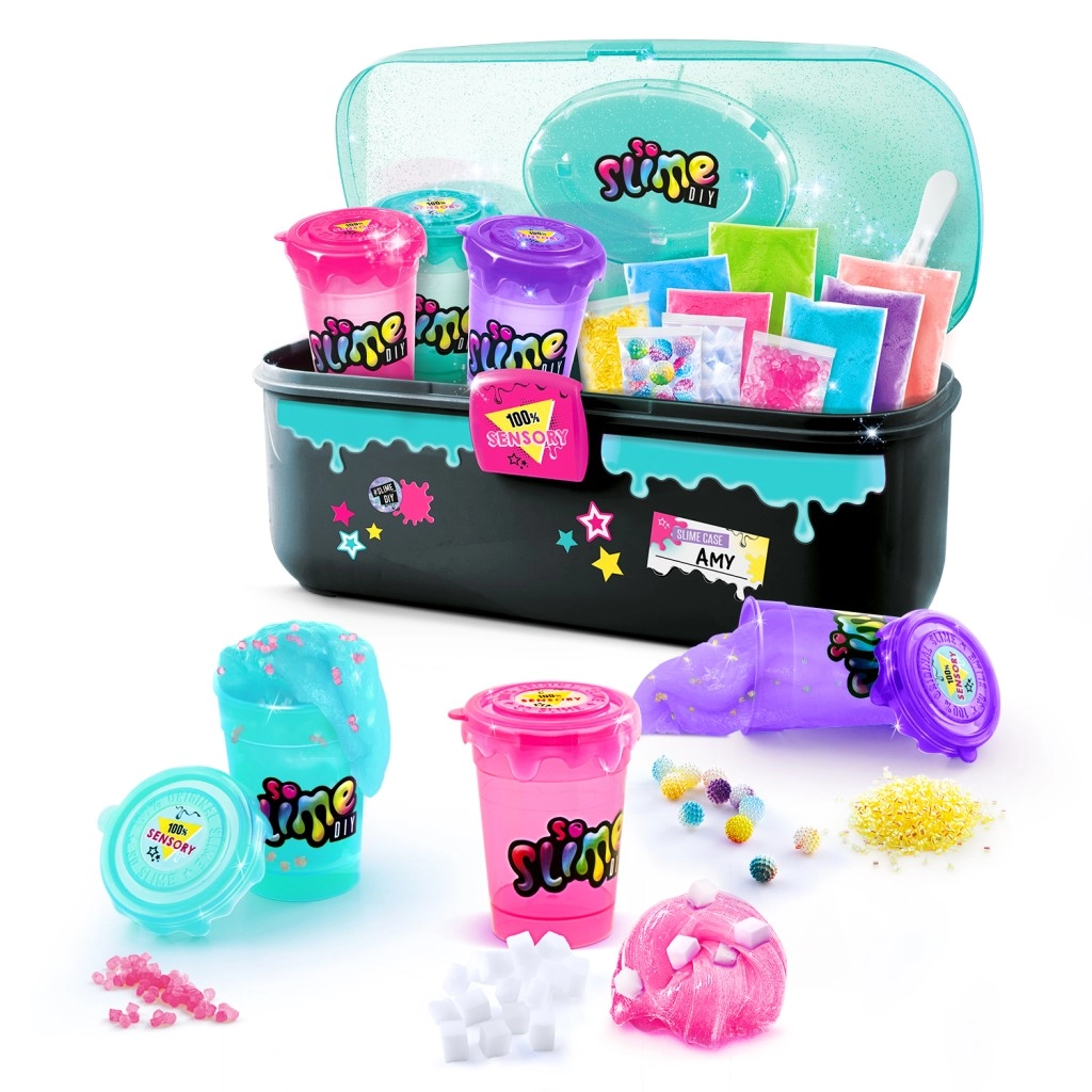 A kompakt SO SLIME bőrönd mindent tartalmaz, amire a gyerekeknek szükségük van a színes és csillogó slime-ok azonnali elkészítéséhez. Néhány egyszerű lépésben egyedi szín- és textúrakombinációkat hozhatnak létre, és a mellékelt dekorációkkal díszíthetik őket.