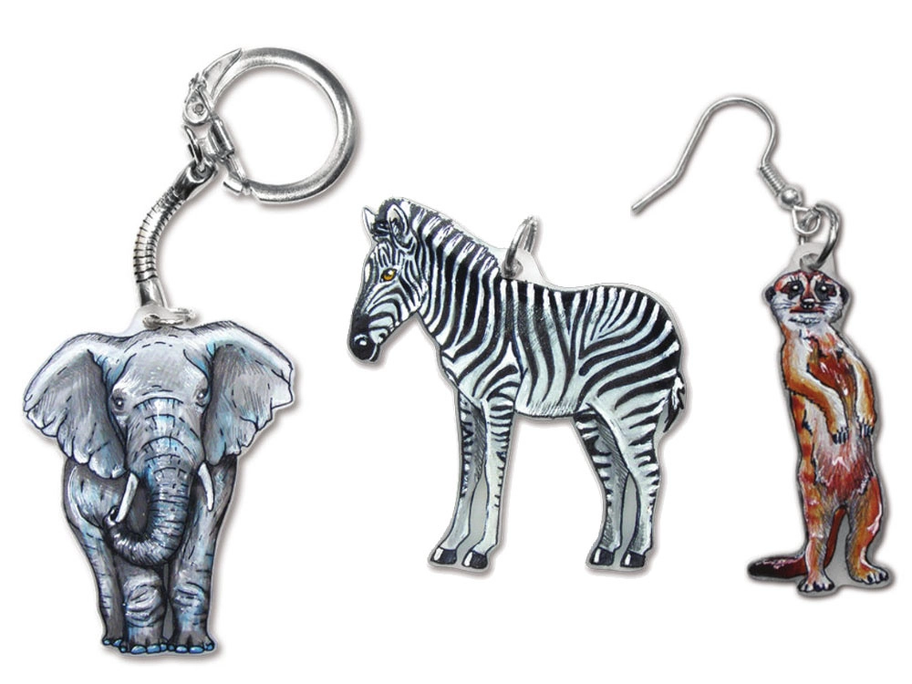 - Ideális kulcstartókhoz, mágnesekhez, fülbevalókhoz és más apró dekorációkhoz szafari motívumokkal.