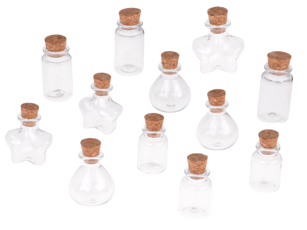 Átlátszó üveg különböző formákban (henger, csepp, csillag stb.) a főzetek gyönyörű hatásáért. Ideális csillámokhoz, gyöngyökhöz és színes folyadékokhoz.