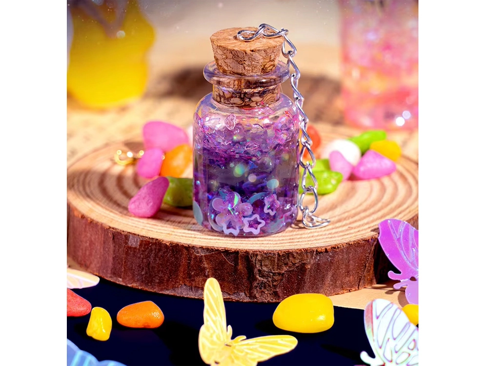 A kész főzeteket kulcstartóvá vagy nyaklánccá alakíthatod. Az üvegcse csillogó kiegészítő és kedves emlék is lesz.