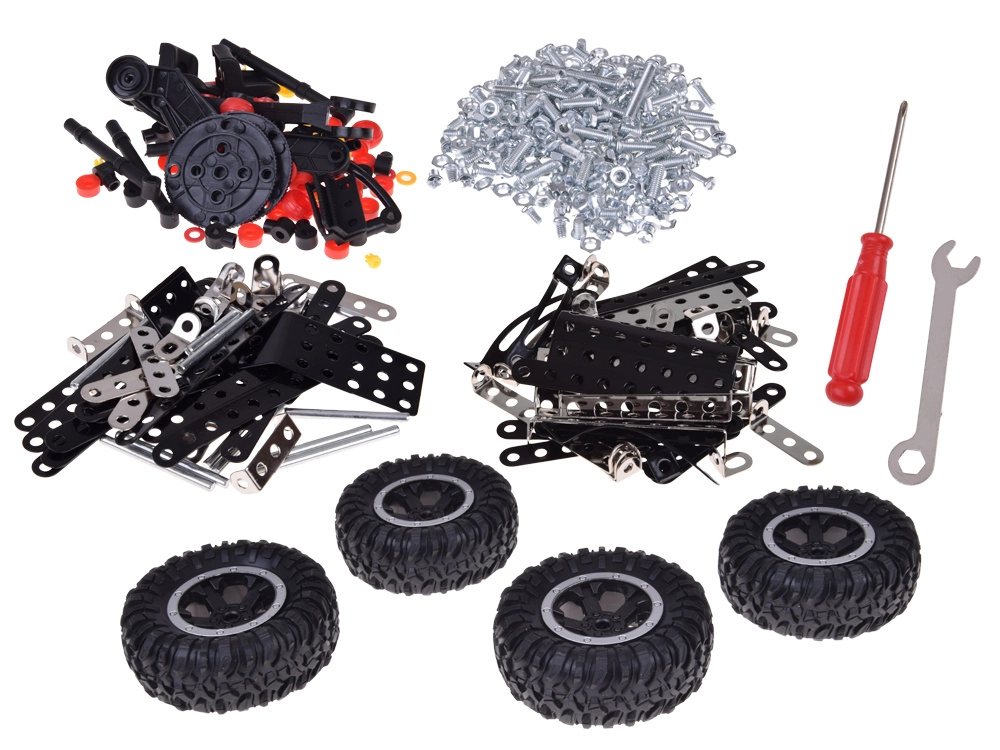 Fém építőkészlet terepjáró teherautó 475 darabbal és szerszámokkal
