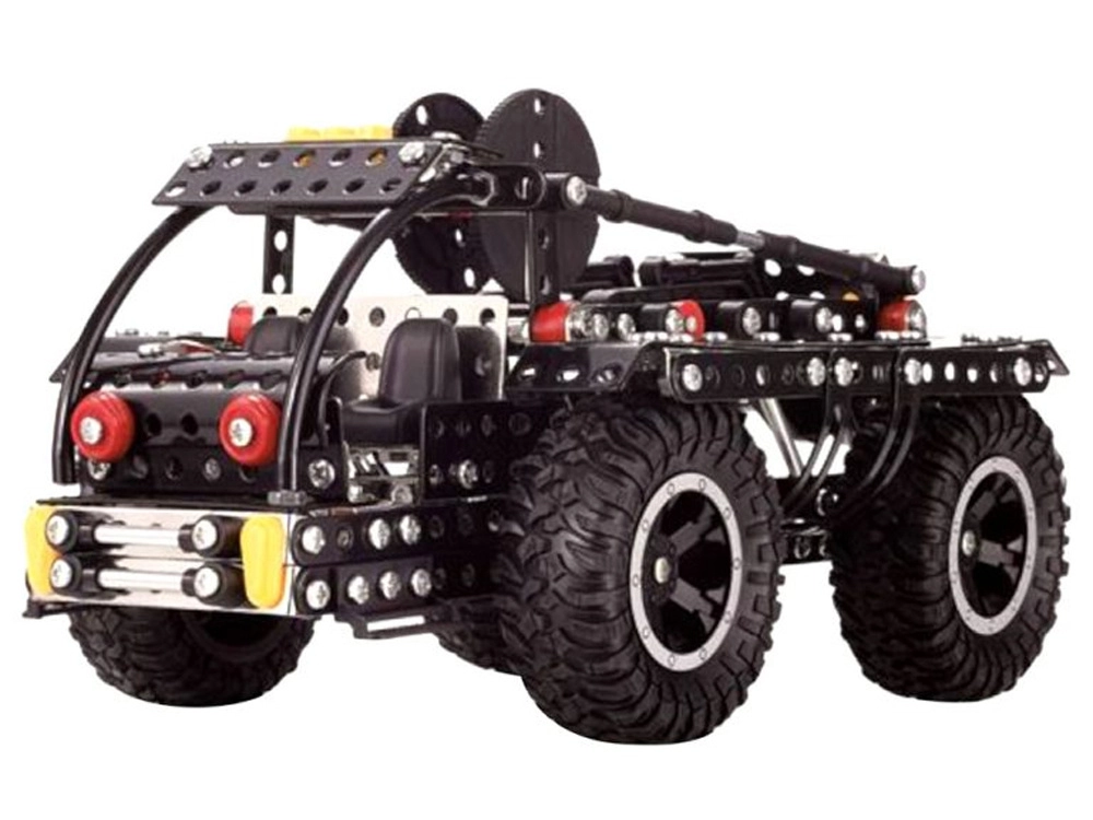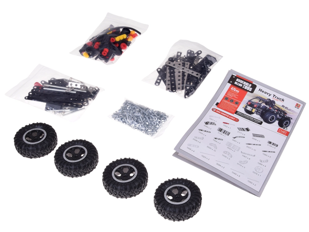 Építsd meg saját terepjáró teherautódat tartós fém alkatrészekből és gumírozott kerekekből. A 475 elemből álló készlet fejleszti a kézügyességet, a logikus gondolkodást, és megismertet a mechanika és mérnöki alapelvekkel. A csomag tartalmaz csavarokat, anyákat, műanyag kiegészítőket, valamint alapszerszámokat az egyszerű összeszereléshez.
