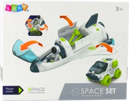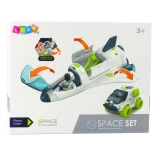- űrhajó, 2 űrhajós figura, űrjármű (rover antennával és napelemekkel)