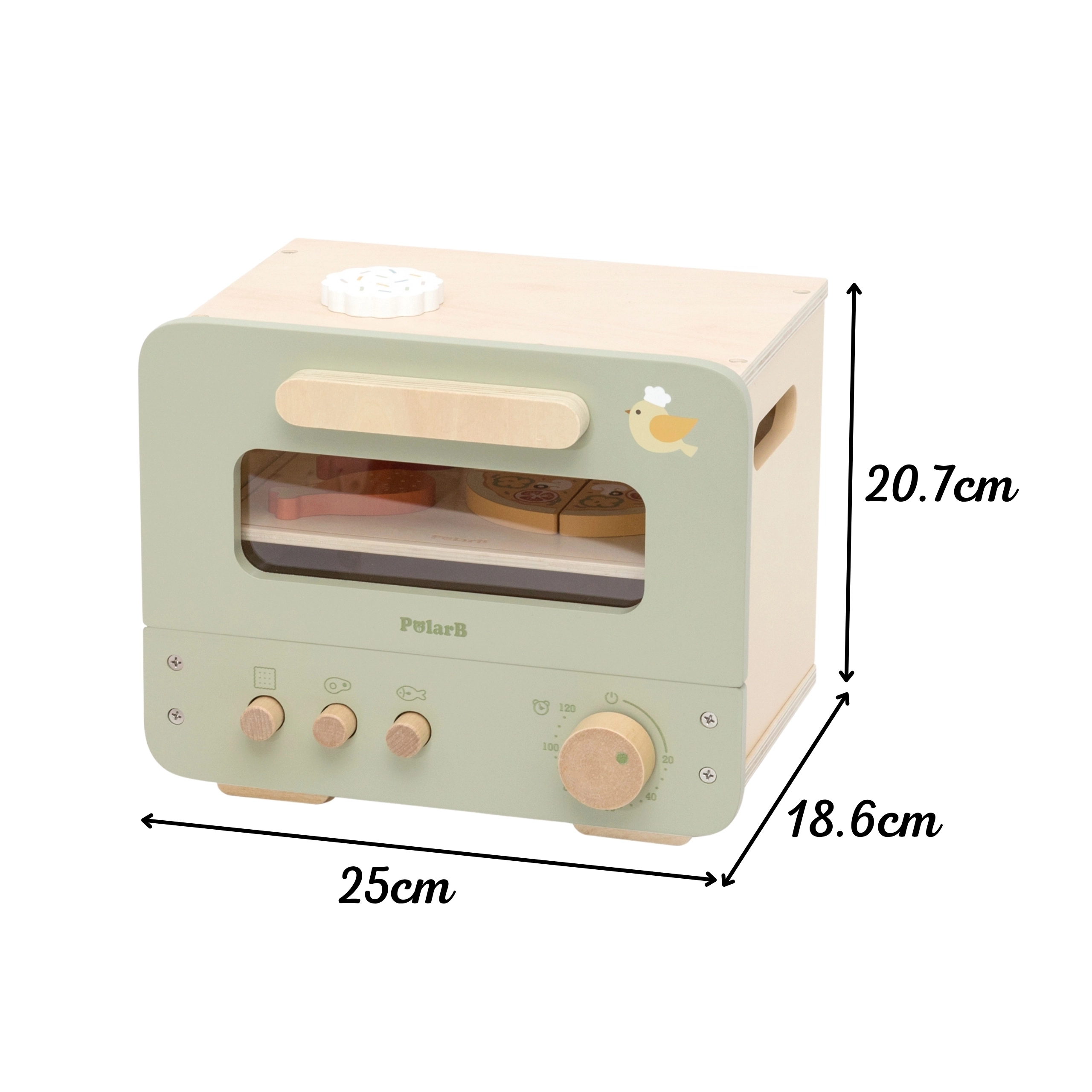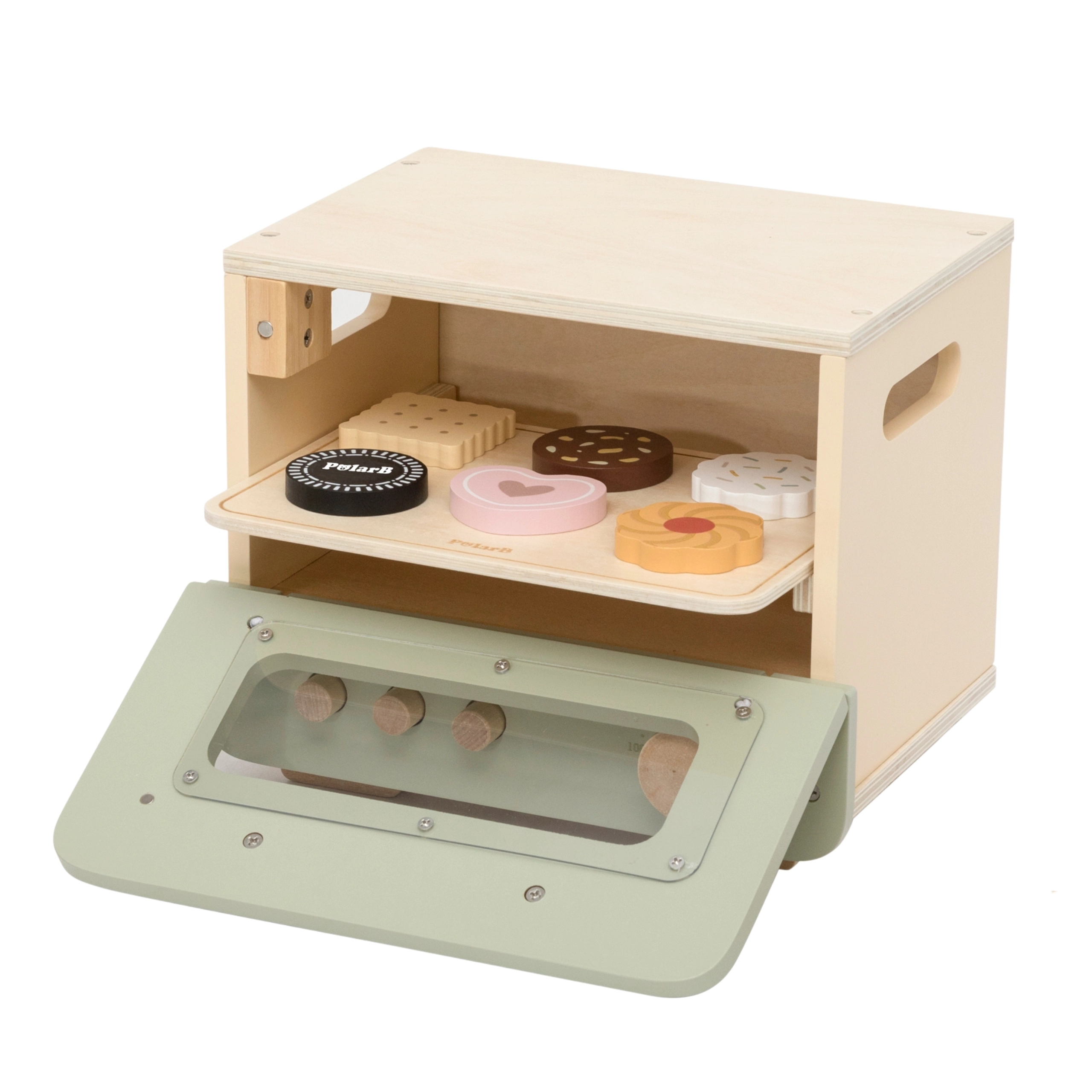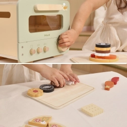 Ez a stílusos, zöld–bézs gyereksütő autentikus sütési élményt nyújt. Az átlátszó ablak, a funkcionális gombok és a kivehető tepsi ötletes tálalásra hív édes és sós finomságokkal. A gyerekek vághatják és összeállíthatják a mini pizzát, süthetnek kekszeket, miközben ügyességet és kommunikációt gyakorolnak szerepjáték közben.