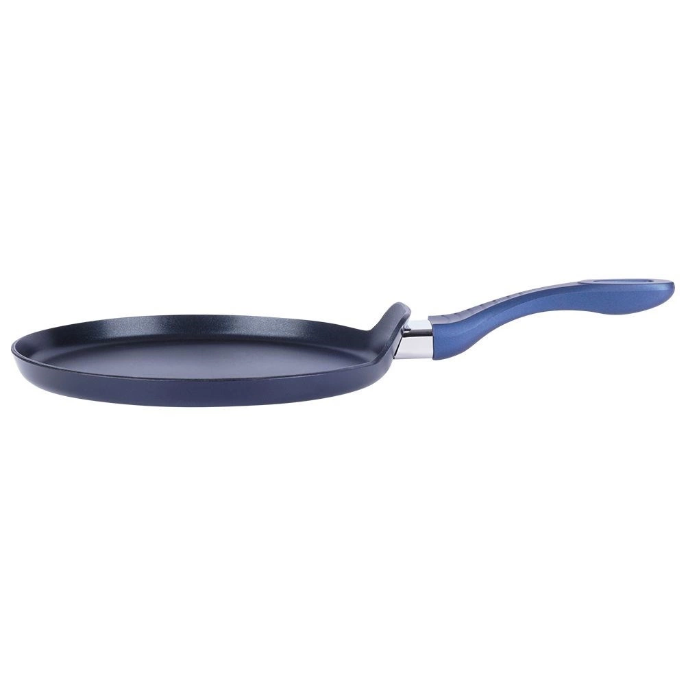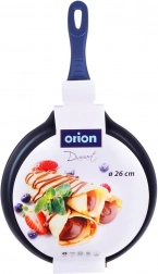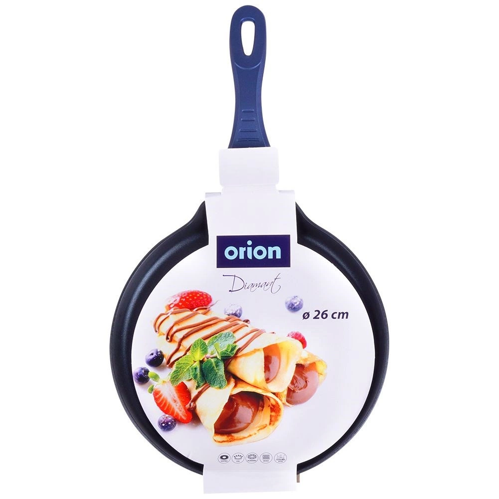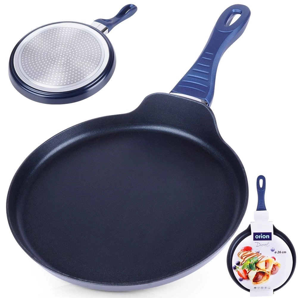 Fedezze fel a gyémánt tapadásmentes bevonattal ellátott, 26 cm átmérőjű palacsintasütőt, tartós öntött alumíniumból készítve. Gyors és egyenletes hőeloszlást kínál, PFOA- és PTFE-mentes, valamint az ergonomikus, csúszásmentes szilikon nyélnek köszönhetően kényelmes a használata. Minden típusú tűzhelyhez, beleértve az indukciót is, alkalmas, és mosogatógépben tisztítható.