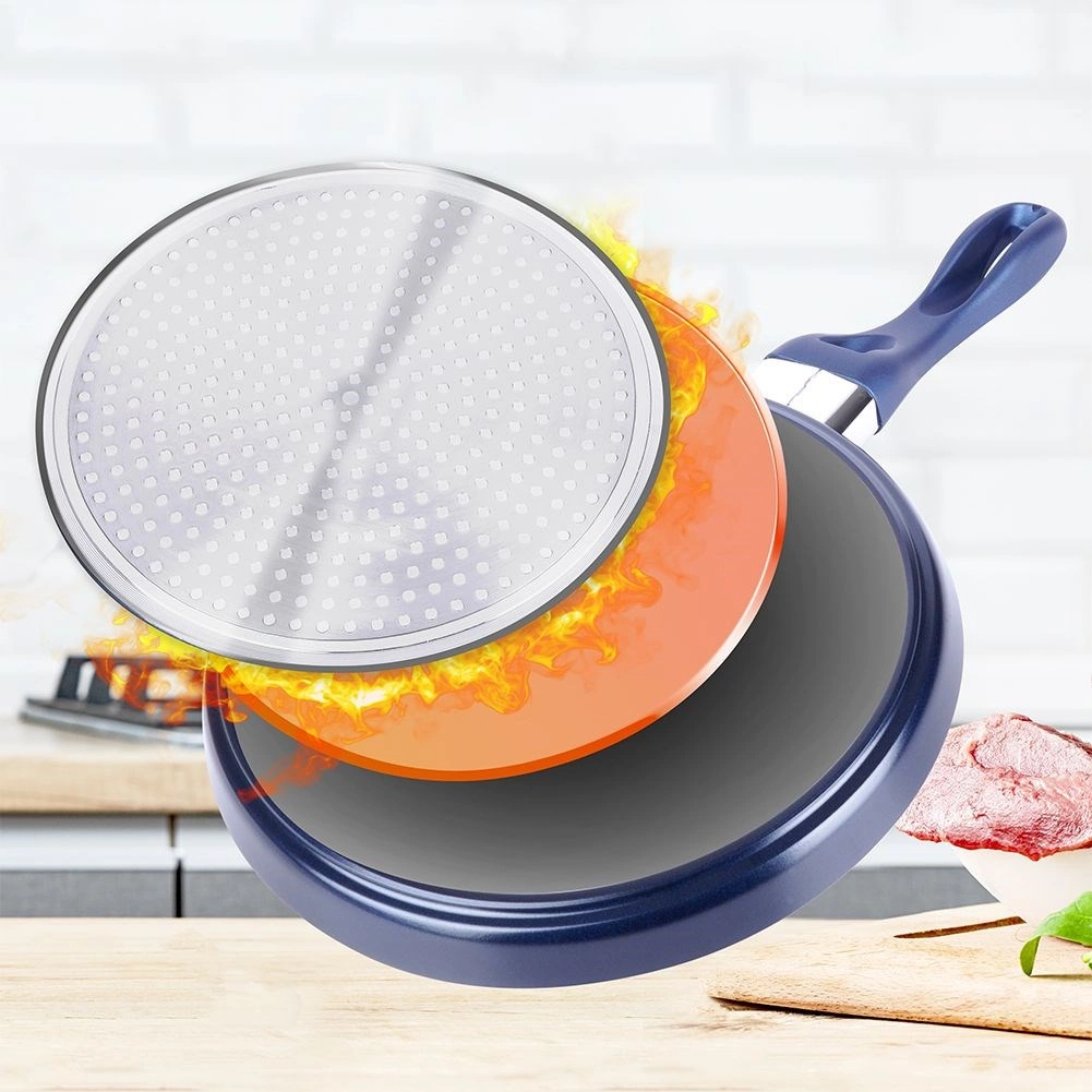 A gyémántszemcsékkel dúsított kerámia alap kiváló tapadásmentességet biztosít, így a palacsinták tökéletesen kicsúsznak szakadás nélkül – minimális zsiradékkal.
