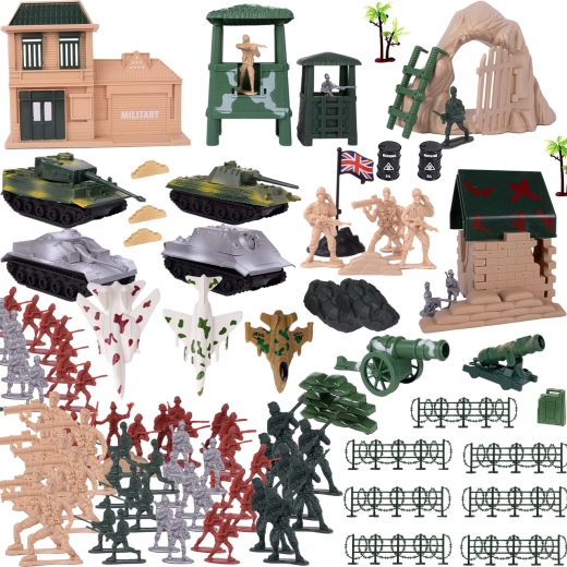 Ez az átfogó katonai készlet órákon át tartó szórakozást és teret kínál izgalmas csatajelenetek megalkotásához. A csomagban változatos kiegészítők találhatók: katona figurák, repülők, tankok, akadályok, építmények, megfigyelőpontok, fegyverek és még sok más. A praktikus, átlátszó, cipzáras táskának köszönhetően minden együtt marad és készen áll az utazásra.