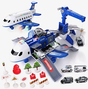 Nagy, szétnyitható rendőrségi repülőgép alakul át játékszintű parkolóvá daruval, fényekkel és hangokkal. A csomag 4 fém járművet tartalmaz, amelyek támogatják a képzeletet és az akciódús játékot. Ideális ajándék a rendőrség és a technika kis rajongóinak.