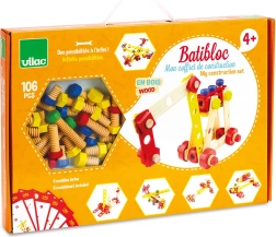 A minőségi VILAC Batibloc fa építőkészlet ideális első konstrukciós szett 3 éves kortól. A színes és natúr, furatokkal ellátott elemekkel és kötőelemekkel a gyerekek járműveket, repülőket és egyedi modelleket építhetnek, miközben fejlődik türelmük és kézügyességük.