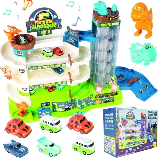 Fedezd fel a játék örömét a Többszintes parkoló – Dínók világa készlettel, amely 3 szintet, látványos hanghatásokat és kompakt kisautókat kínál a végtelen szórakozáshoz. 3 éves kortól ideális, fejleszti a fantáziát, a finommotorikát és a térbeli tájékozódást. A működéshez 3 db AA elem szükséges (nem tartozék).
