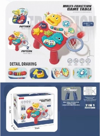 A szórakoztató, Dino motívumos oktató asztal egyesíti a játékot és a tanulást. A gyerekeket lenyűgözik a fényhatások, a hangfunkciók és a kis kosárlabda gyűrű, amelyek fejlesztik a finom- és nagymozgásokat, valamint a koordinációt. A könnyű és strapabíró műanyag szerkezet ideális a gyerekszobába, az elemes működésnek köszönhetően pedig az asztal könnyen hordozható és bárhol használható.