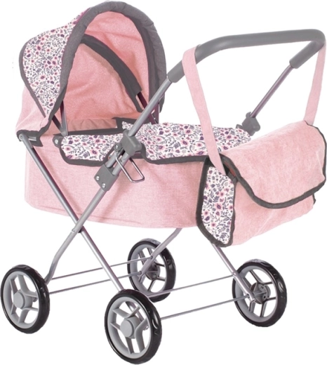 A romantikus Pink Flowers mintájú, stílusos babakocsi minden kis anyukát megörvendeztet. Stabil szerkezetet, kényelmes mély mózeskosarat és praktikus kiegészítőtáskát kínál. Kompakt méreteinek köszönhetően otthon és a szabadban is könnyen kezelhető, és támogatja a kreatív játékot, a babákról való gondoskodást és a képzelet fejlesztését.