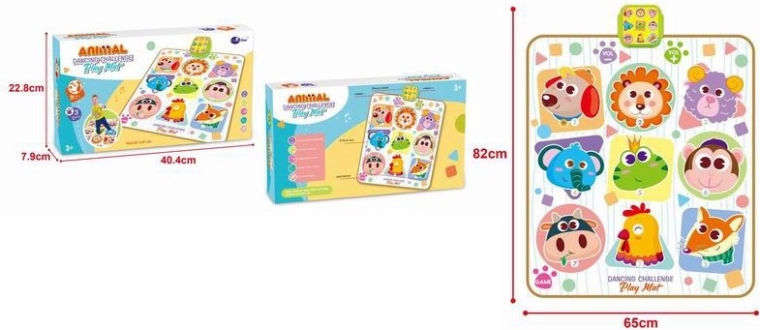 Fedezze fel a szórakoztató zenei és táncszőnyeget állatkákkal, amely mozgásra és tanulásra ösztönzi a gyerekeket. Kínál 9 érintőmezőt állatképekkel, állítható hangerőt, áttekinthető üzemmódokat és kényelmes elemes tápellátást.
