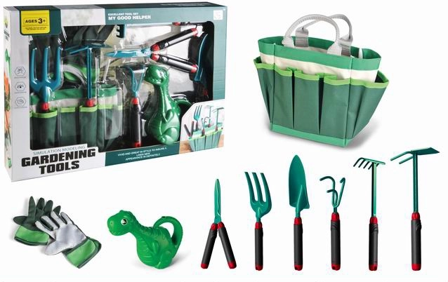 - Komplett felszerelés: öntözőkanna, olló, gereblye, ásókanál, kapácska, kis talajlazító, kesztyű