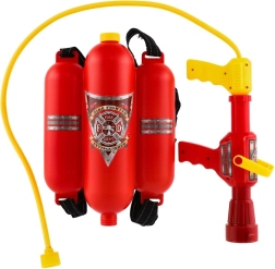 Ez a funkcionális tűzoltó vízipisztoly műanyag hátitartállyal minden délutánt izgalmas mentőakcióvá változtat. Elég megtölteni a tartályt vízzel, felcsavarni a tömlőt, és beállítani a vízsugár erősségét – már kezdődhet is a képzeletbeli tüzek oltása. Ideális kertbe, játszótérre vagy a vízpartra.