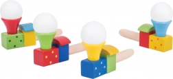 Ez a színes fa mozdony lufival a hétköznapi fújást kis csodává változtatja. A gyerekek gyakorolják és kontrollálják a légzésüket, figyelik, ahogy a fehér labda a kémény felett lebeg, miközben fejlődik a koordinációjuk és a türelmük. Ideális rövid, játékos szünetekhez és hosszabb, összpontosított szórakozáshoz is.