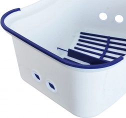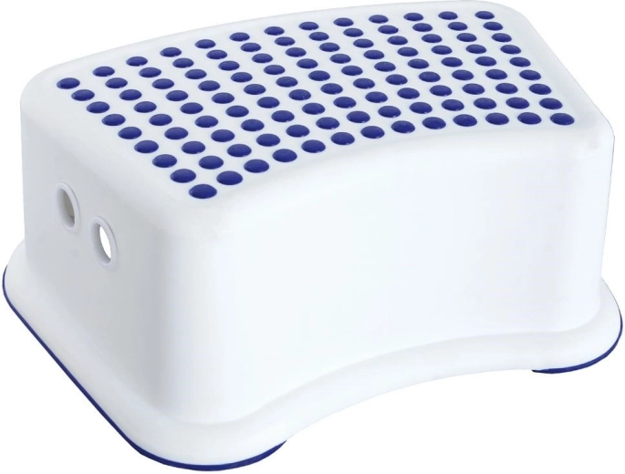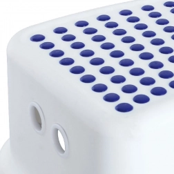 Praktikus és csúszásgátlós fellépő gyerekeknek és felnőtteknek, megkönnyíti a mindennapi elérést a mosdóhoz, polcokhoz vagy a zuhanyhoz. Stabil felépítést kínál, kompakt méretben 26 × 36 × 13 cm, valamint legfeljebb 80 kg teherbírást. Minőségi műanyagból készült fehér színben kék elemekkel, a felső felületen és az alsó éleken csúszásgátló gumival.