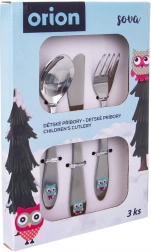 Gyermek rozsdamentes evőeszköz bagoly mintával, 3 db