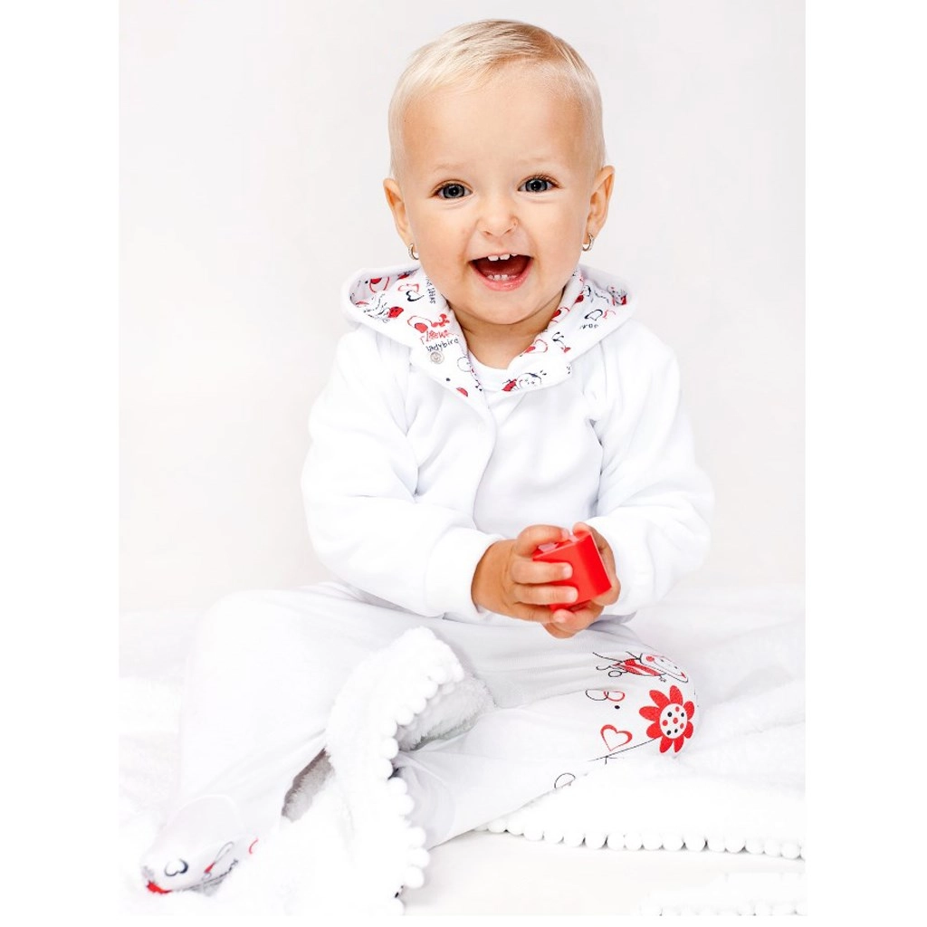 Aranyos és puha velúr kapucnis pulóver katicás applikációval. Ideális mindennapi viseletre – kellemes tapintású, könnyen kezelhető, és kényelmes szabású, hogy szabadon mozoghass. Selymes velúr felület, rugalmas anyag és praktikus kapucni a kényelemért és a stílusért.