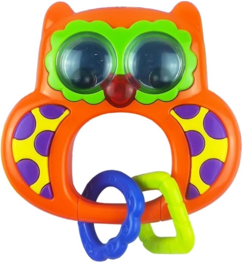 A BABY MIX vidám, bagoly alakú csörgője már az első napoktól leköti a babák figyelmét színeivel és formáival. 4 dallamot játszik, könnyen megfogható kialakítású, és biztonságos, tartós anyagokból készült, amelyek könnyen tisztíthatók. Fejleszti a motorikát és a koordinációt, és elemeket is tartalmaz.