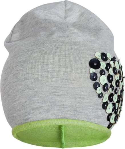Stílusos és kényelmes NEW BABY sapka, kiváló választás átmeneti időre. A finom 100% pamut kellemes viseletet biztosít, elvezeti a hőt és hagyja a bőrt lélegezni. A vidám szívecske applikáció játékos megjelenést ad a szürke–zöld sapkának, amely könnyen összehangolható a mindennapi öltözékkel.