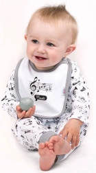 A NEW BABY Music kabát egyszerű, egyszínű törzsrészt kombinál aranyos, kottajelekkel és hangszerekkel nyomott ujjakkal. A minőségi pamut kötött anyagnak köszönhetően légáteresztő, puha és kellemes tapintású, így egész nap maximális kényelmet nyújt a babának.