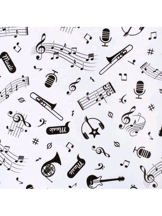 - Játékos minta: kottajelek és hangszerek az ujjakon