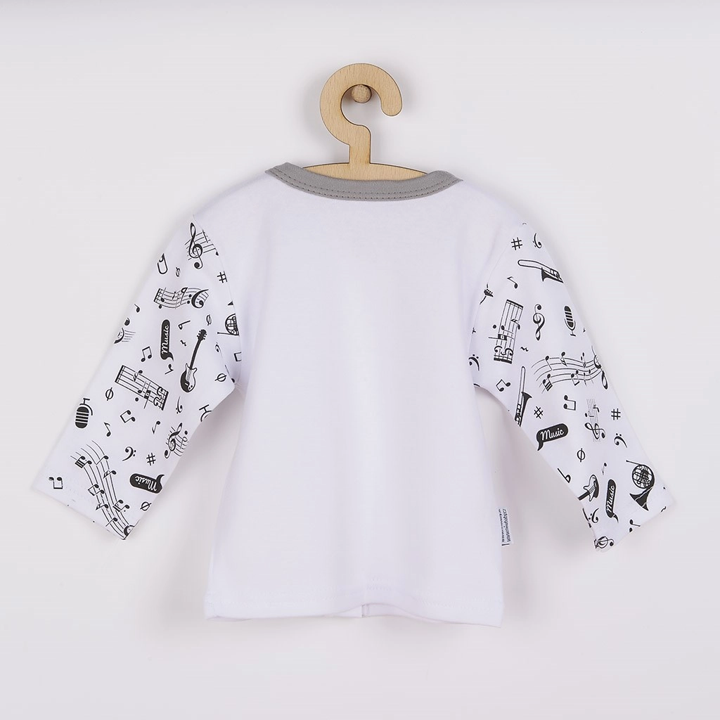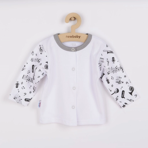 A NEW BABY Music kabátka ideális választás a mindennapi viseléshez. A finom, légáteresztő 100% pamut kényelmet biztosít, míg a játékos zenei minta stílust és örömöt visz a mindennapokba.