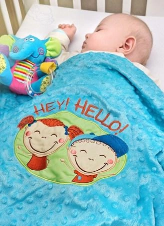 A Sensillo Hey Hello takaró remek választás a mindennapi használathoz kiságyban, babakocsiban és autósülésben is. A plüss és a velúr kellemes kombinációjának köszönhetően nagyon puha tapintású, és egész évben meghitt meleget nyújt a babának. A 100% poliészter anyag színtartó, nem engedi a színét, és érzékeny bababőrre is alkalmas.