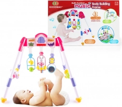 Szórakoztató és fejlesztő babatorna 3 hónapos kortól, amely fényhatásokat, melódiákat és színes csörgőket kínál. A felső panel különféle dallamokat játszik, a csillag és a hold világít és villog, a középső játék meghúzására pedig aktiválódik a lejátszó modul – felcsendül egy dallam, és egy kis állatka bukkan elő a házikóból. Ideális a fogás, a koordináció és az érzékelés fejlesztéséhez.