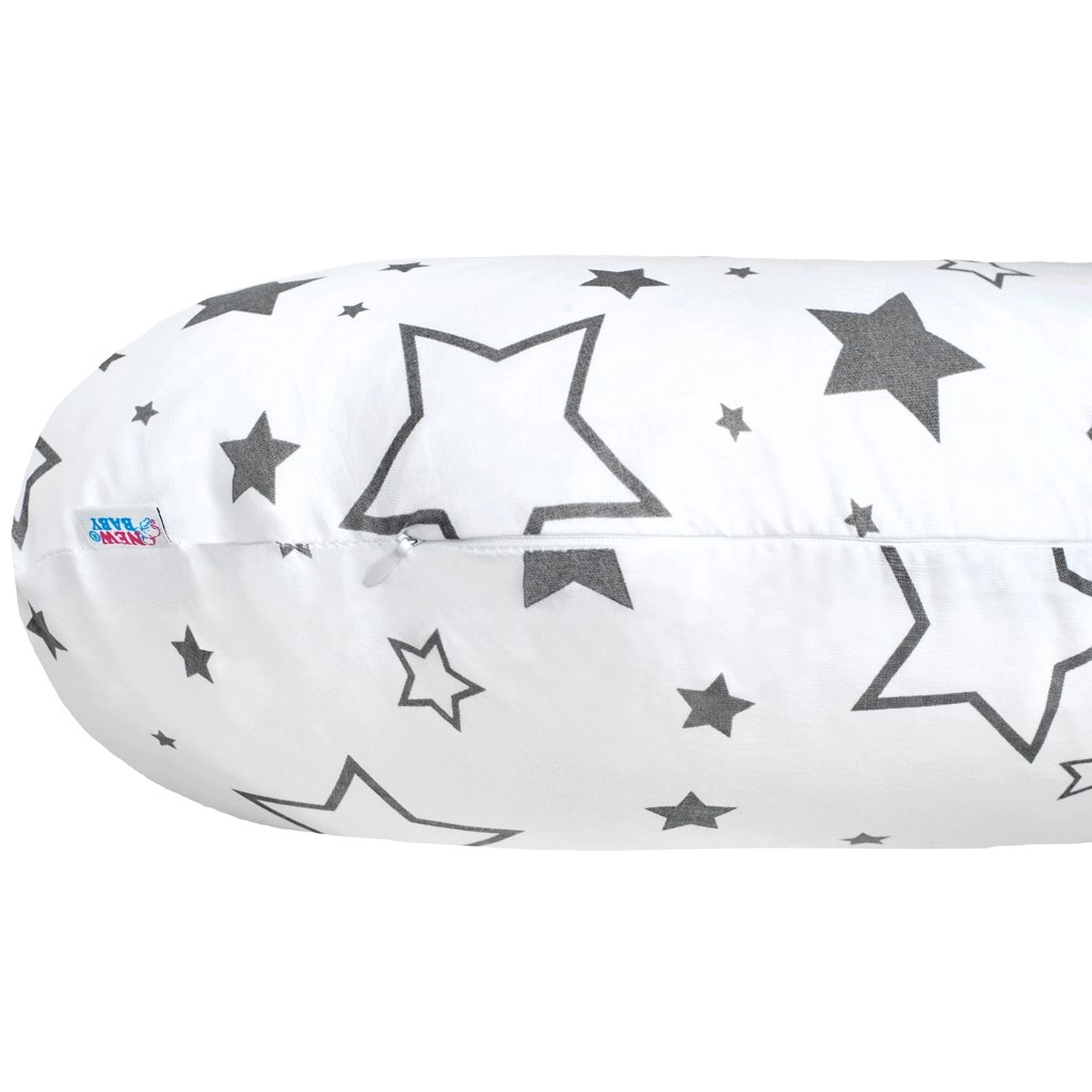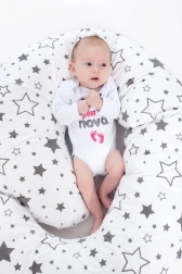 A 100% pamut huzat kellemes tapintású, légáteresztő, és könnyen levehető, valamint mosható. A pehelykönnyű, formáját tartó poliészter töltet alkalmazkodik az anya és a baba testéhez. A szürke csillagokkal díszített semleges megjelenés bármely enteriőrbe illik.