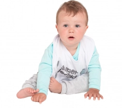 A nyomtatáshoz használt színek tanúsítottak és biztonságosak gyermekek számára. Az előke fehér szegéllyel és patentos záródással készül, így könnyű feladni és jól a helyén marad. Ideális a mindennapi etetéshez, védi a ruházatot a szennyeződésektől és kényelmesen tartja a babát.