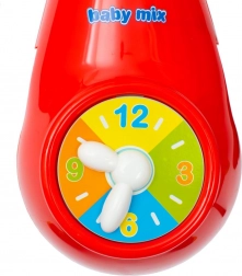 A figurák könnyen leszerelhetők és csörgőként használhatók (magasság kb. 10 cm). Az oldalán egy vonzó színes óraszámlap található, amely érintésre és a mutatók forgatására ösztönzi a gyerekeket. Minden funkció – melódiák, forgás, vetítés – függetlenül indítható, hogy megteremthesse a baba számára az ideális légkört.