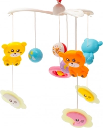 A BABY MIX vetítős kiságyforgó nyugodt elalvást és nappali szórakozást nyújt a kicsiknek. A vetítő változó csillagokat jelenít meg, és éjjeli fényként szolgál. A zenegép 3 dallamot és természet hangjait játssza le, állítható hangerővel. A forgó finoman forog, és fejleszti a vizuomotoros koordinációt.