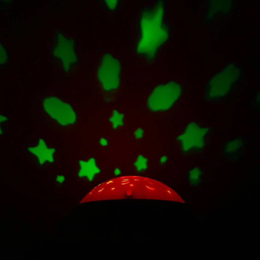 A vetítő változó csillagokat jelenít meg, és éjjeli lámpaként is szolgál – ideális a baba nyugodt elalvásához.
