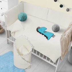Az elegáns és funkcionális, 3 részes BELISIMA Dino 3D szett a kiságyat meghitt és biztonságos alvóhellyé varázsolja. A felső oldal tartós és könnyen kezelhető (50% pamut, 50% poliészter), az alsó oldal 100% pamut a bőrrel közvetlenül érintkező felületeken. A semleges krém–rózsaszín árnyalat és a plasztikus 3D dinoszaurusz motívum a gyermekek és a szülők tetszését is elnyeri.