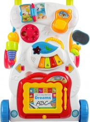 Segítsen a kicsinek felfedezni a világot a BABY MIX járókával, amely ötvözi az első lépések támogatását és a sokféle elfoglaltságot. Tartalmaz egy mini zongorát hangokkal és dallamokkal, egy levehető kattogó telefont, egy lapozható kis könyvecskét és egy törölhető rajztáblát. A négy keréknek és a masszív kivitelnek köszönhetően kiváló az egyensúly gyakorlásához, miközben a fények és az oldalsó játékok fejlesztik az érzékelést és a finommotorikát.