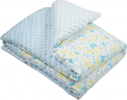Ez a kétoldalas takaró tapintásra és látványra is rabul ejt: az egyik oldal puha minky finom 3D dudorokkal a szenzomotorika ösztönzésére, a másik 100% pamutból készült, egyedi, edukatív mintákkal élénk színekben. A könnyű, antiallergén szálas töltet gondoskodik a kényelemről a babák és a nagyobb gyerekek számára is, minden évszakban.
