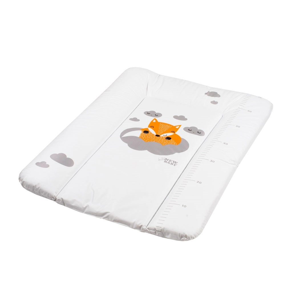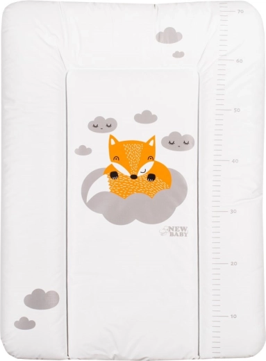 A New Baby rókás mintájú, praktikus és kényelmes pelenkázó alátét puha és biztonságos helyet kínál a mindennapi pelenkázáshoz. A megmagasított oldalaknak és a vízálló felületnek köszönhetően komódra és más sík felületekre is ideális. A 70 × 50 cm-es méret és a kb. 4 cm vastagság elegendő helyet és komfortot biztosít a babának.