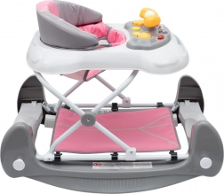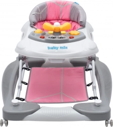 A rózsaszín BABY MIX multimédiás bébikomp egyesíti a járástanulást és a játékos stimulációt. A 2 az 1-ben funkció – bébikomp és hinta – lehetővé teszi a könnyű átváltást igény szerint. Az ergonomikusan formázott ülés támogatja a helyes testtartást, míg a 360°-ban forgó elülső szilikon kerekek sima és csendes mozgást biztosítanak a padló sérülése nélkül.