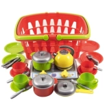 Többféle konyhai eszközt és edényt tartalmaz piros, zöld és sárga színekben, amelyek fejlesztik a gyermek kreativitását.