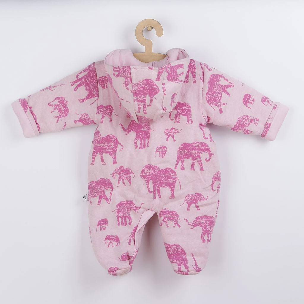 Bélelt baba kezeslábas kapucnival BABY SERVICE Elefántok – rózsaszín
