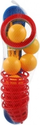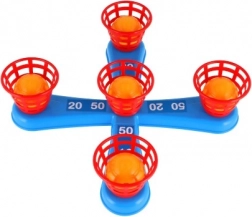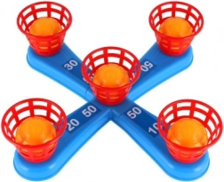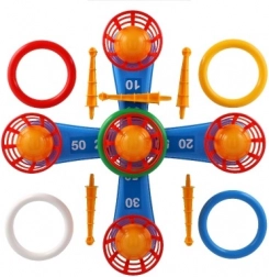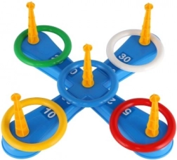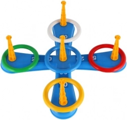 Ez a szórakoztató játék ideális a legkisebb gyerekek számára. Tartalmaz egy keresztet öt tüskével, amire a gyerekek színes műanyag karikákat dobnak a pontgyűjtés céljából. Minden dobás, amikor a karika sikeresen a tüskére kerül, pontot hoz, ami ösztönzi a versenyt és a precizitást. A játék másik változata ugyanezen az elven működik, ám a tüskéket labdás kosarak váltják fel, ami új kihívást jelent.