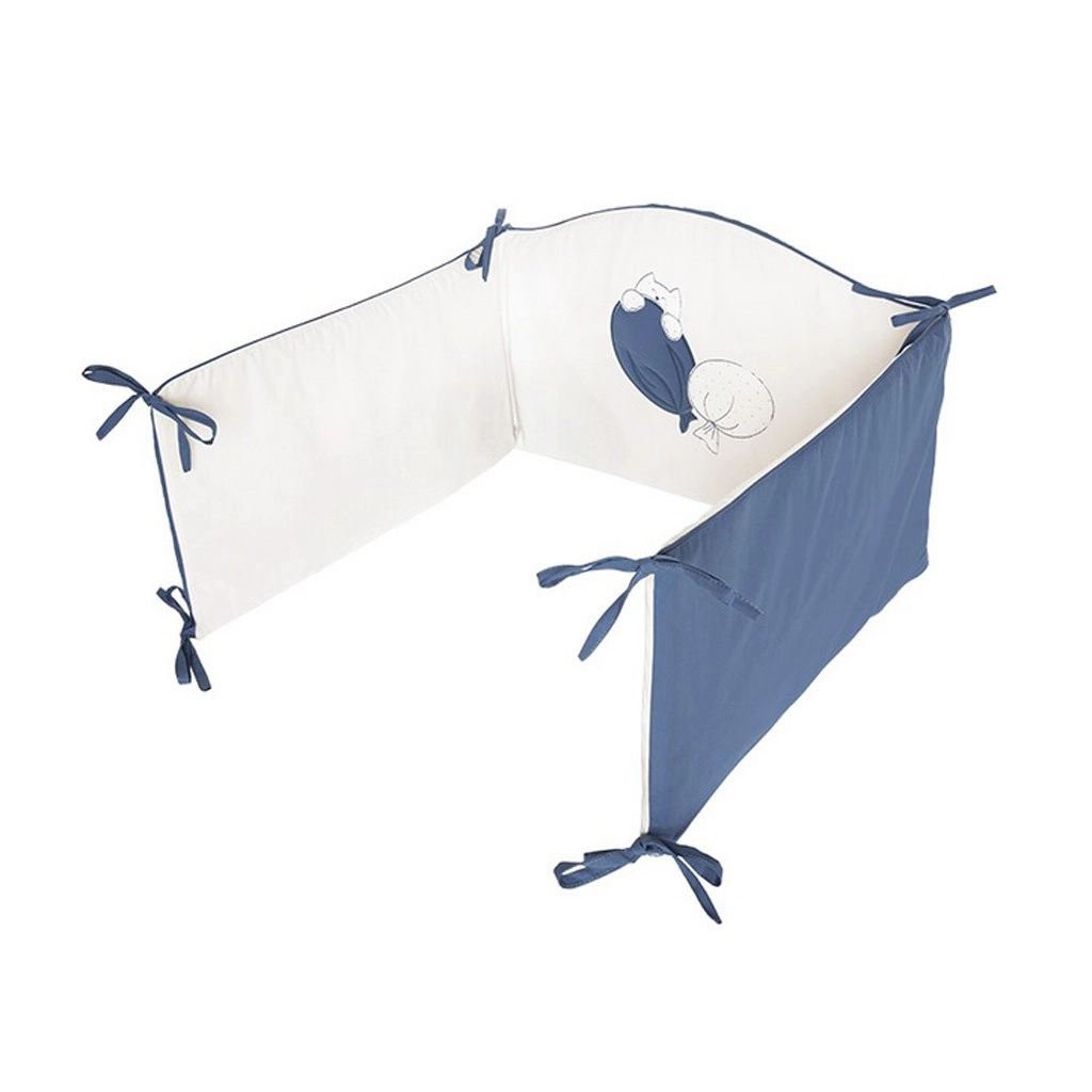 Párnázott rácsvédő többpontos rögzítéssel, amely védi a kisbabát a rácsnak ütődéstől és növeli a biztonságérzetet.