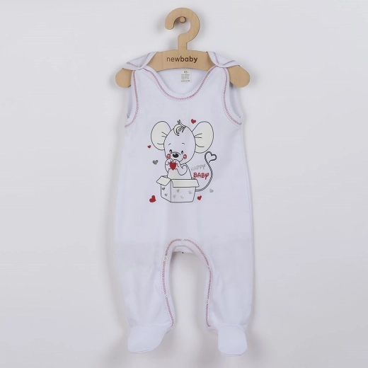Aranyos újszülött rugdalózó New Baby Mouse, puha 100% pamut anyagból, kényelmes patentos záródással a vállrészen és a lábak között, valamint vidám egérke mintával. Cseh márka, amely a minőségre és kényelemre helyezi a hangsúlyt a babának.
