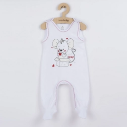 Aranyos újszülött szett New Baby Mouse fehér színben, amely kényelmet és praktikusságot kínál a mindennapi viseléshez. A szett része egy rugdalózó és kabátka 100% pamutból, amely kíméletes a baba bőréhez. A kabátka teljes hosszán, valamint a rugdalózó vállán és a lábak között található pattentos záródás megkönnyíti az öltöztetést és a pelenkázást. A rugdalózót nagy egér minta és színes szegély díszíti. Cseh márka.